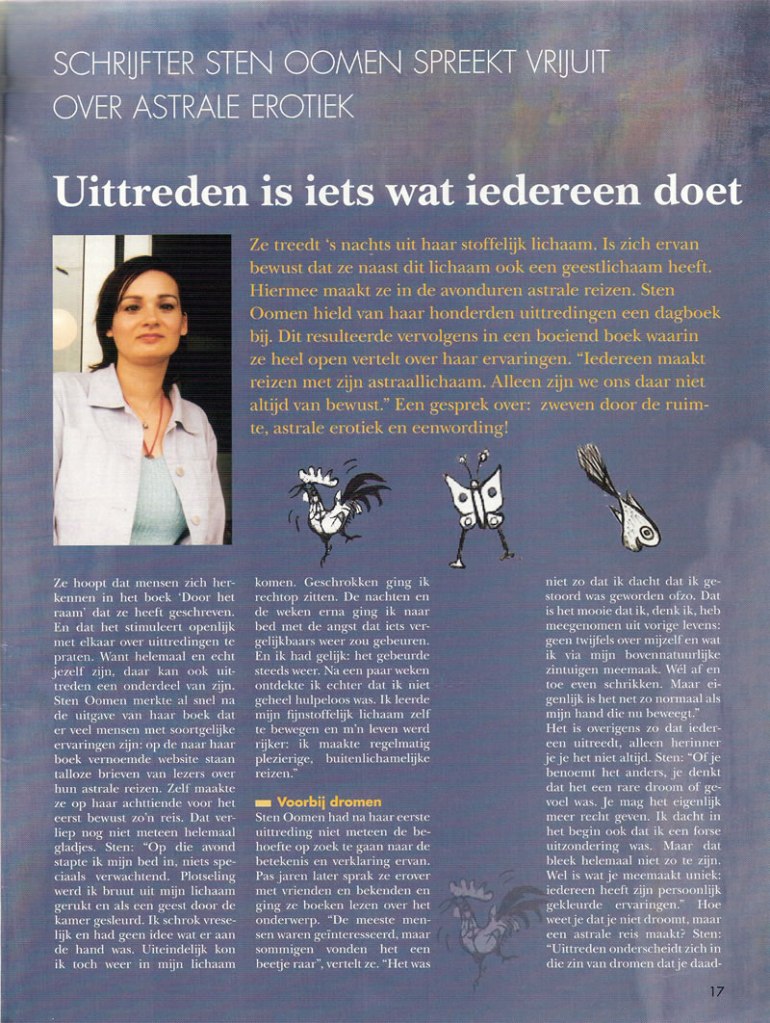 December 2006 Vervolginterview over astrale erotiek in het tijdschrift Vriendin (nr. 49) door Stephanie Kaars
