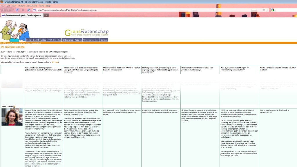 December 2006 Sten laat samen met elf anderen haar gedachten over 2006 en 2007 de vrije loop.