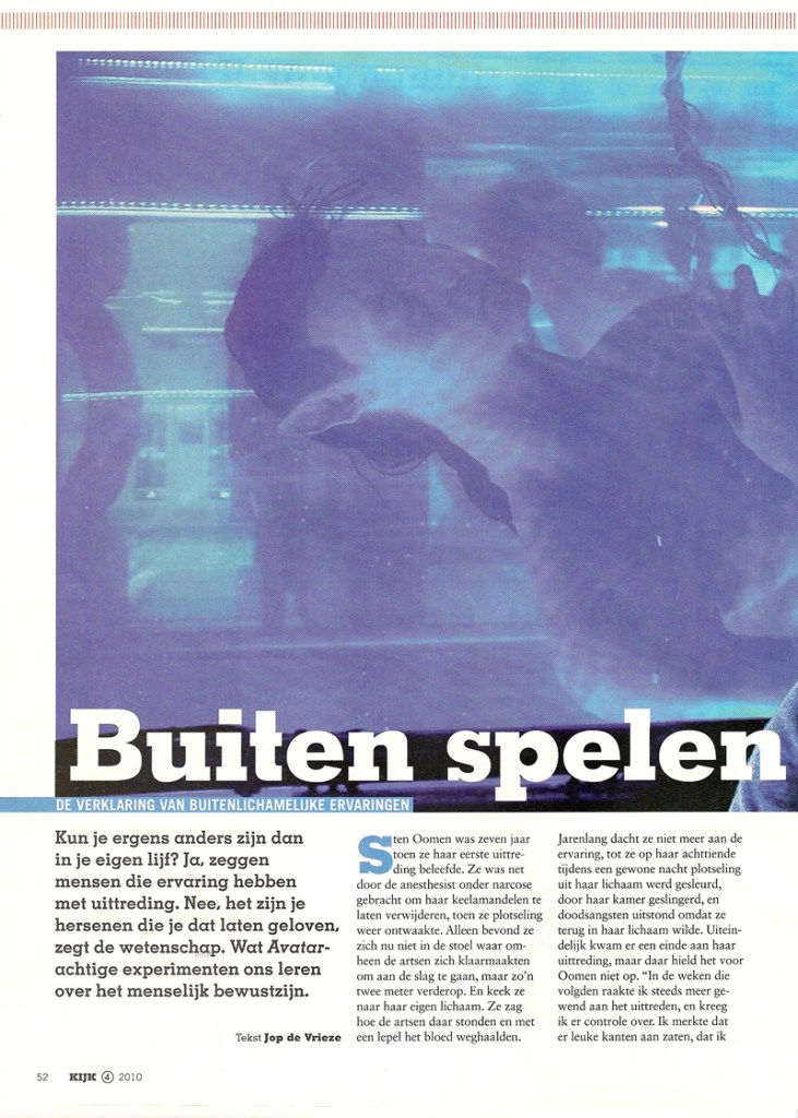April 2010 KIJK Magazine komt met een artikel van Jop de Vrieze over Uittredingen: “Buitenspelen met je brein”, waarin uitvoerig gedeelte over Stens ervaringen. Teaser op website + Artikel