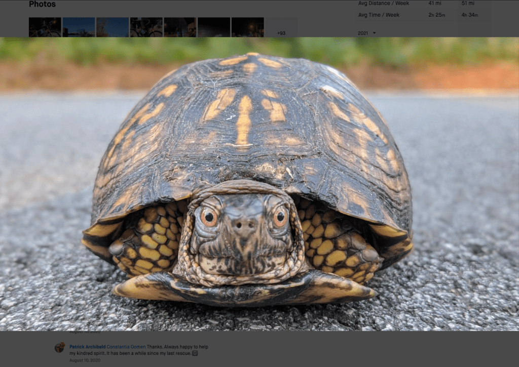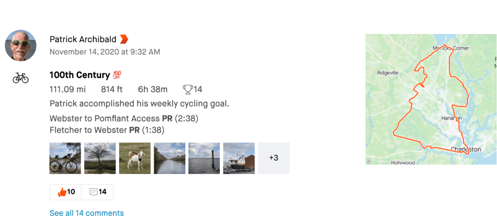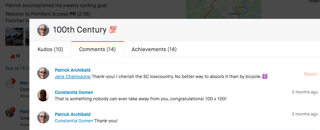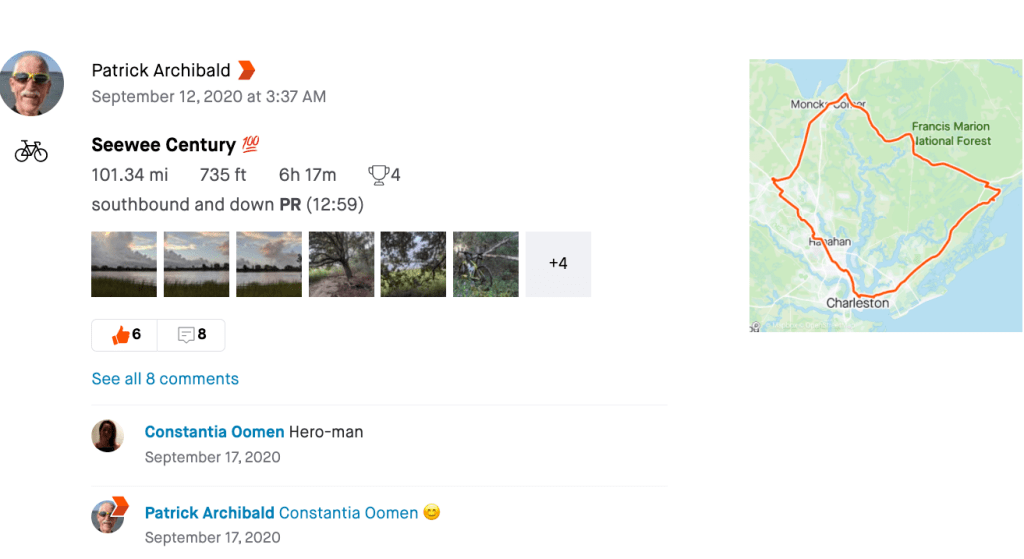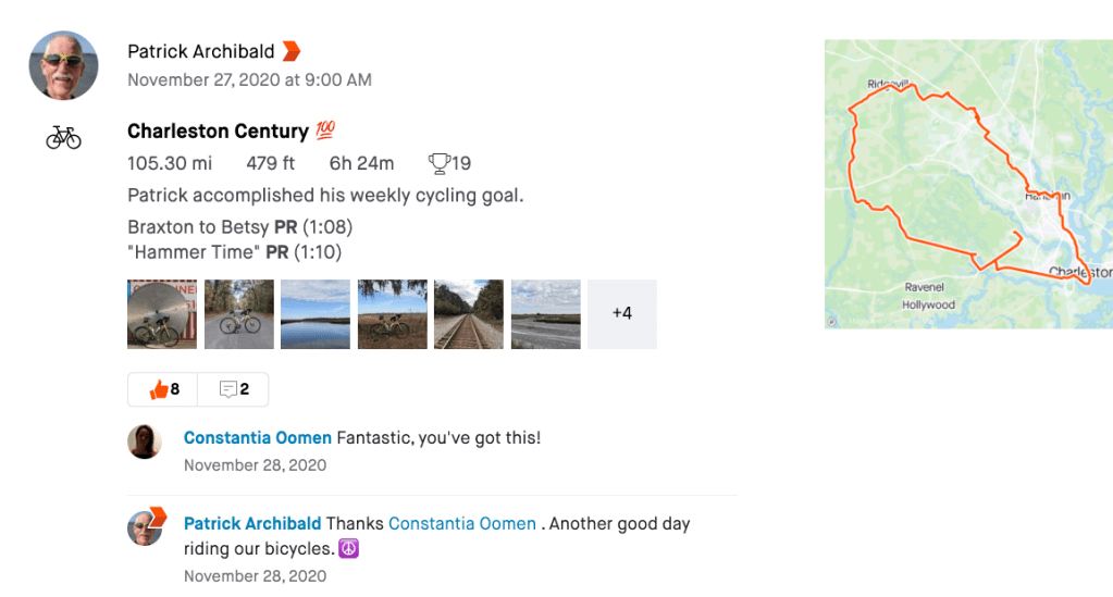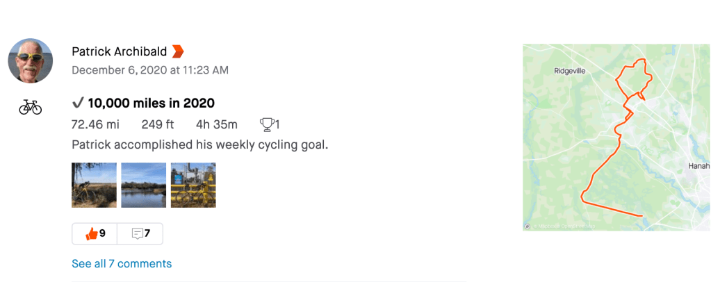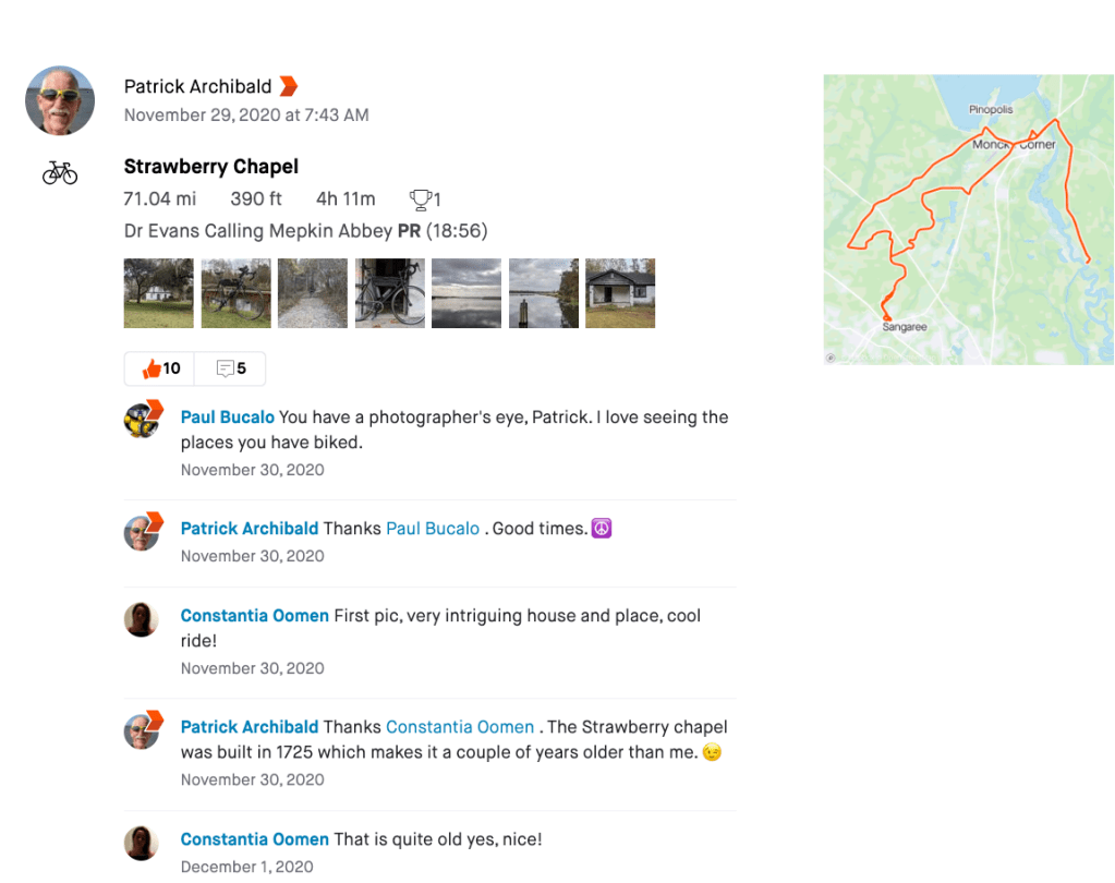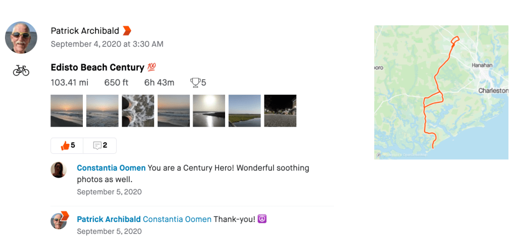 The following gallery starts with our meeting in Mastodon, and then goes from your most recent posts to the beginning of 2020, and ends with the final comment I made on your last Strava post. Please click on or swipe through these images as they are cropped for layout in the overview.