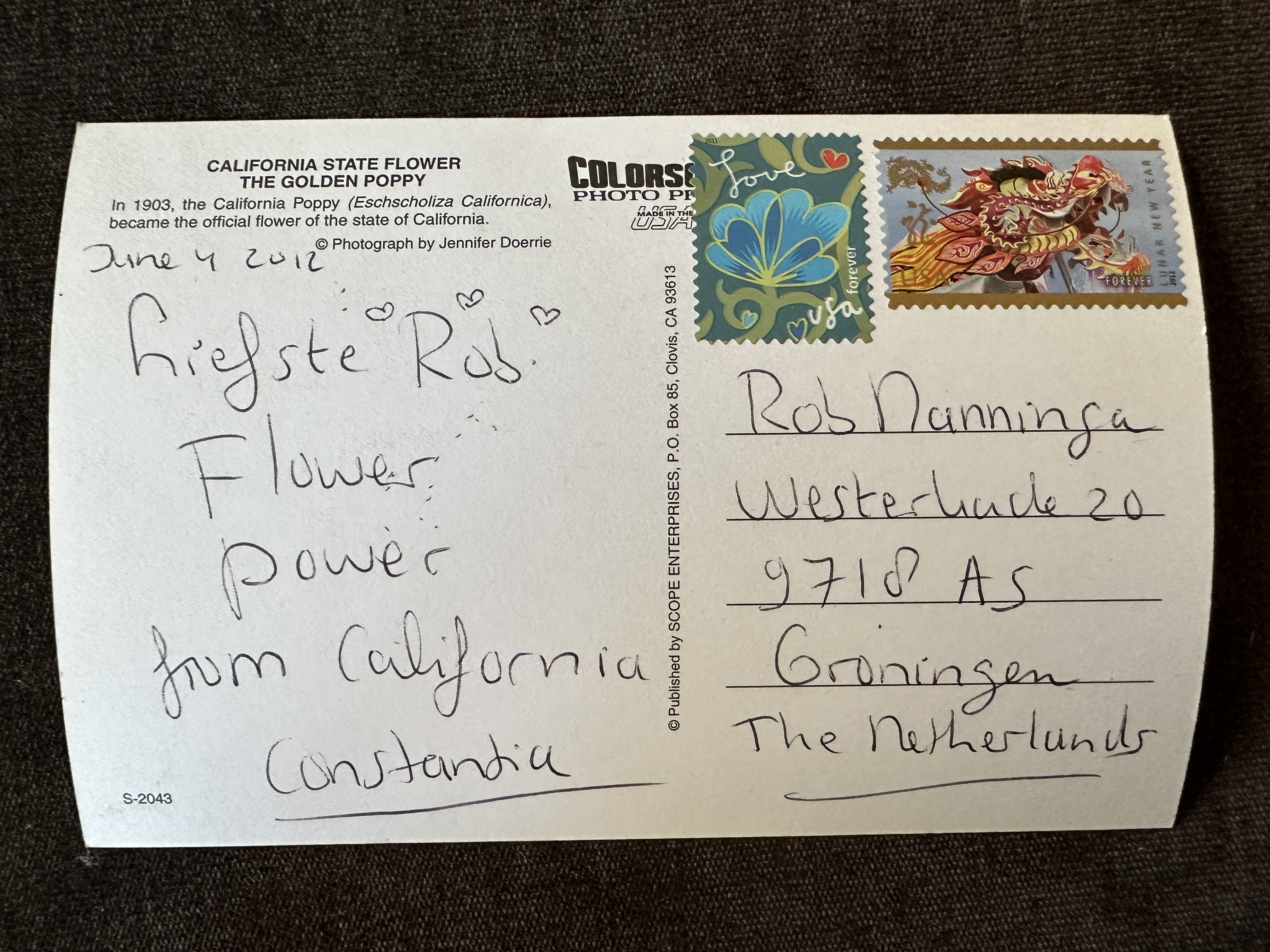 In this house lived my housemate Jocelyn. When my ex left, I found myself in an acute financial attention situation. I started looking for housemates, and Jocelyn was the first to walk in here as a candidate through a Facebook advertisement. From the summer of 2017 until the beginning of the pandemic, I had housemates. I immediately liked Jocelyn. She stayed for two years to complete her bachelor’s degree in Psychology at UC Davis. Then she left back to Los Angeles, where her family lives. We didn’t keep in touch. But then there was a surprise here. A snippet from her email, which I received on March 9, 2023: “[…] I always thought you were a cool and interesting person despite us not talking for a while. And over time my appreciation for the experience at the house has grown, as well as an interest for Dutch culture. I made a friend from the Netherlands and we like to share things about each other’s cultures and have even sent gift packages with things like snacks/foods from our countries. (It turns out I’m not the biggest fan of licorice…) In fact, I am making a trip with my brother to Europe later this month, visiting the Netherlands, Belgium, and France for 1 week.” I even received a postcard from the Efteling, where she had been. She didn’t know that this meant something to Rob and me because she hadn’t read my blogs. All of this was such a surprise to me that, as far as I’m concerned, it falls under magical realism. Suddenly, I also knew who I could leave my concrete belongings as well as my digital legacy to, see my previous blog for that. It all fell into place; she has even started learning the Dutch language, she knows me and the house, and she’s also a Leo by zodiac sign. When she left as a housemate, she gave me a small plastic lion. It now sits by a portrait of Rob. Since mid-April 2024, she has been living with the Dutch friend and his parents to explore how the match works. She’s quite a talented artist, as seen in image 1, and in image 2, a photo of her visit to Bataviastad: