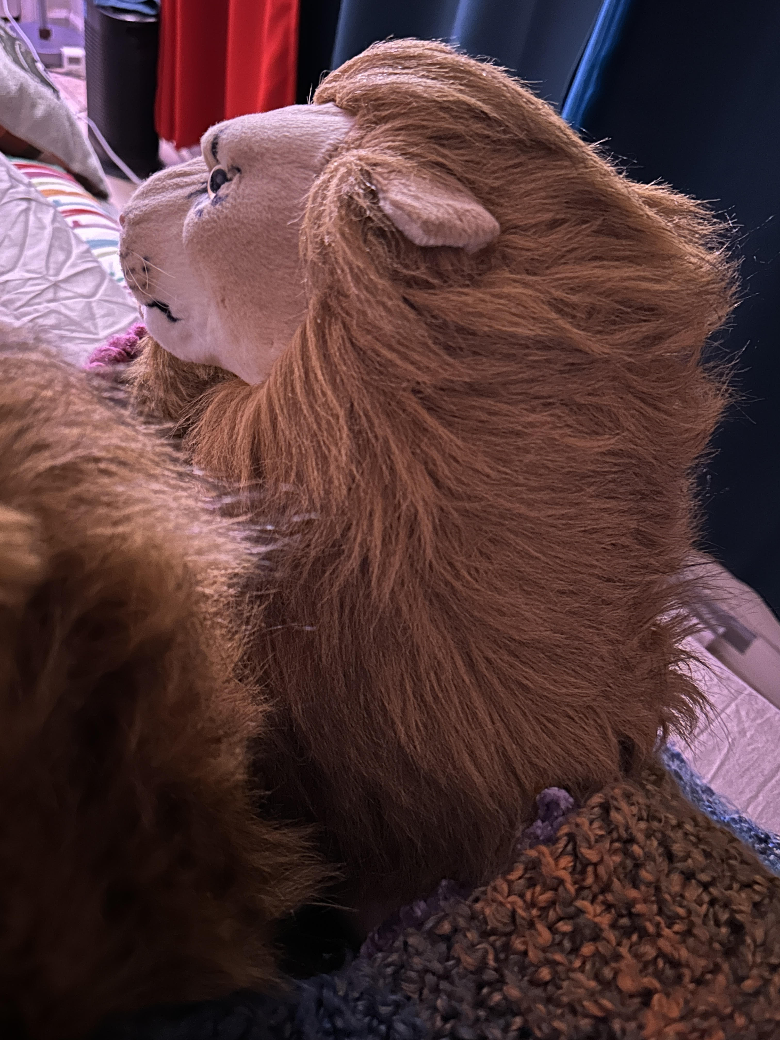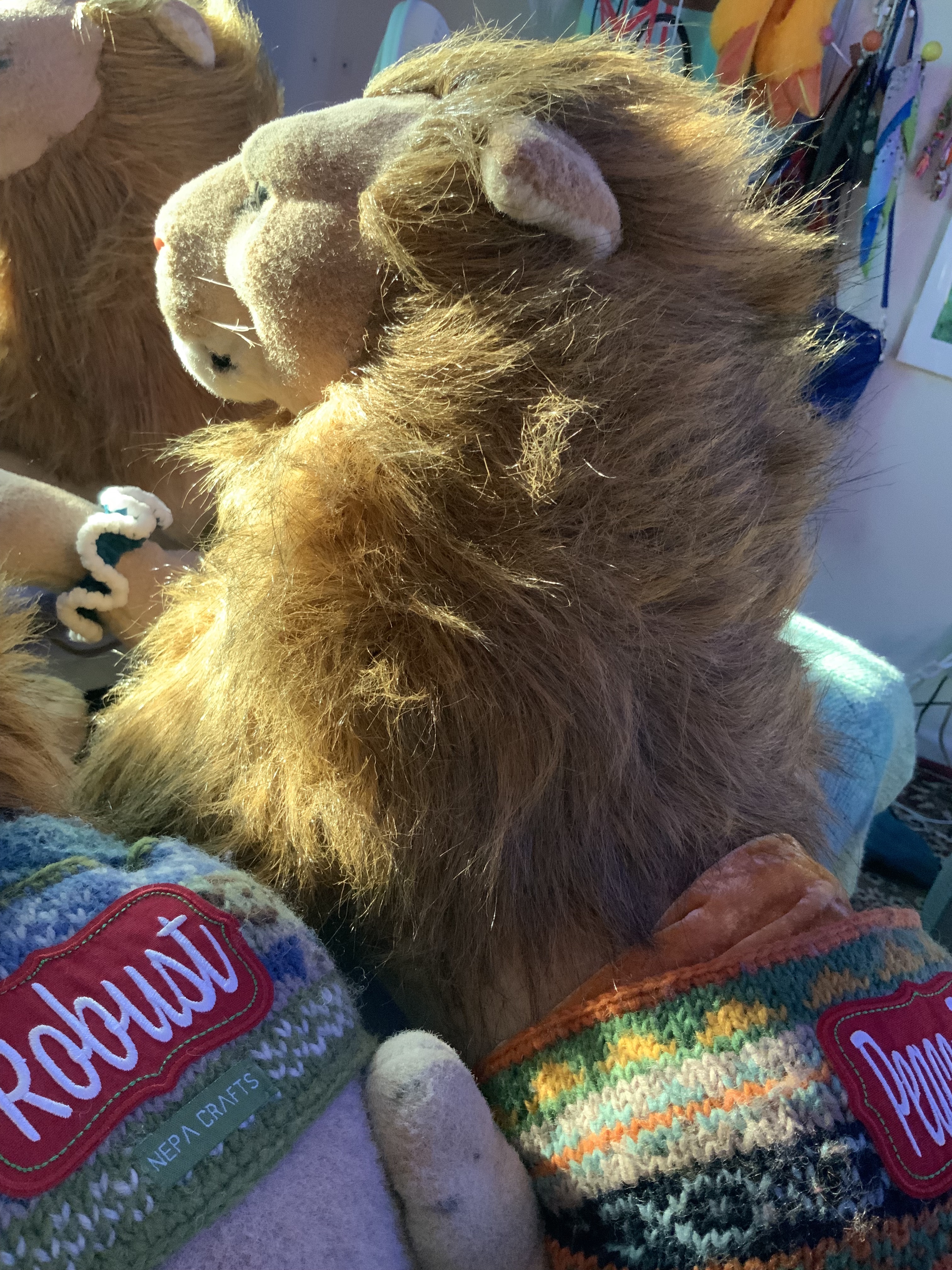 Regarding the visual lion updates, I had left off with the treasurer Rob Treasure Lion. Since then, two more lions have been added to the Inner Crew. Rob Traveler Lion has an irresistible “Who, me?” look in his eyes, saying, “Madam, why are you looking at me like that?” before devotedly falling into my arms. Rob Fierce has a striking fiery glow in one of his eyes.