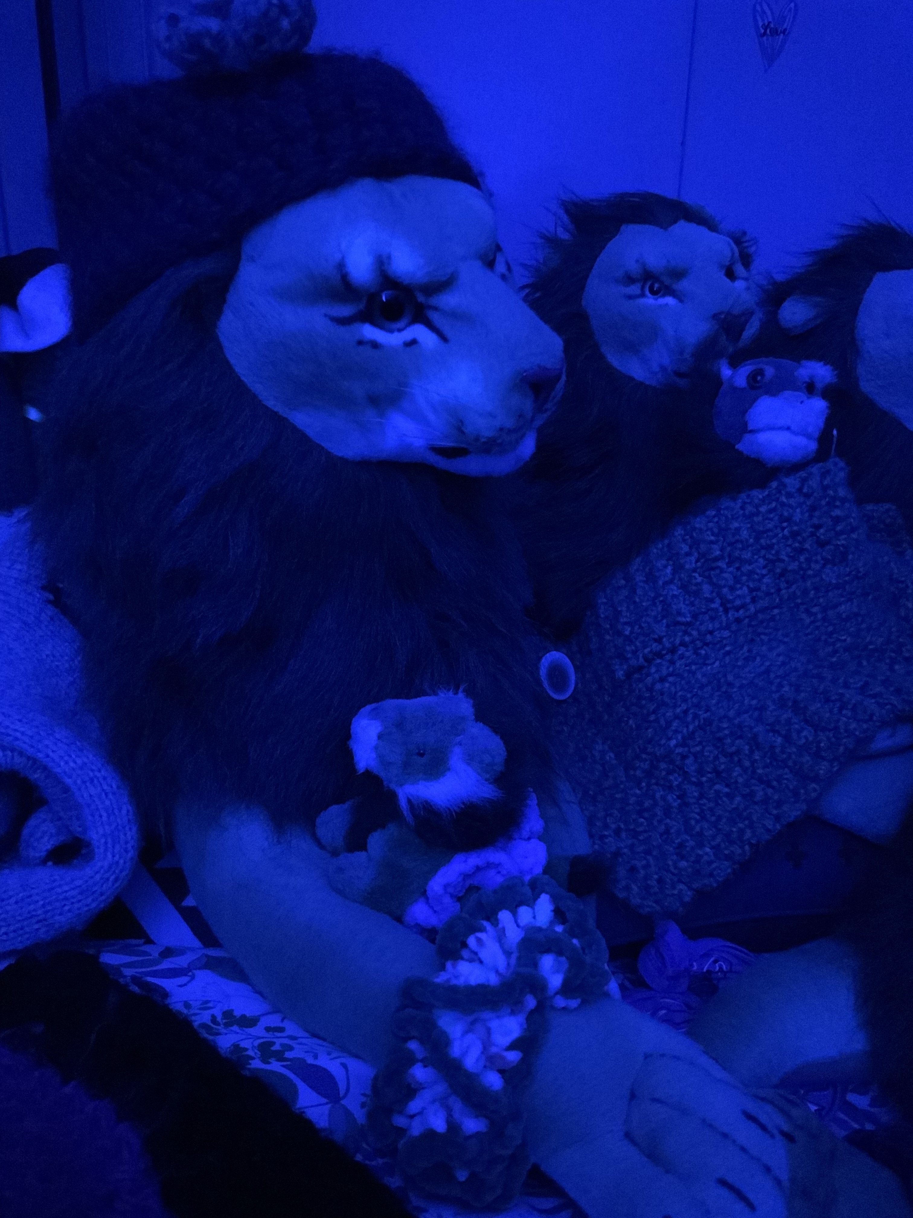 And time and time again, when I was at my wit’s end, the flame beneath my earthly despair and loneliness began to flicker, encouragements came, and still come: “Hang in there!” Let me give a few examples. I’m completely in love with the new inner crew Rob Nanninga lion “Surprise” with his beautiful soft mane, his attentive and lightly ironic, heavenly eyes. I’m head over heels for all the inner crew Rob lions, and the infatuation strikes again and again. And last March, my mind made a beautiful connection: the lion had literally arrived like a ball, and another word for ball is “Orb.” That word is itself a skeptical wink because “orbs” in photos are often seen by paranormal believers as spirits or energies. Suddenly, the word Rob rolled over to Orb, and then I immediately had a new name tag made for Rob Surprise Lion. My mind then continues to play with the name of the new Rob lion: Surprise Orb, Supreme Orb, Sublime Orb, Superb Orb, Super Orb, Stunning Orb…